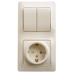 Блок Schneider Electric GSL000274 Glossa (розетка 1-местная с заземлением и защитными шторками + выключатель 2-клавишный), в сборе, бежевый
