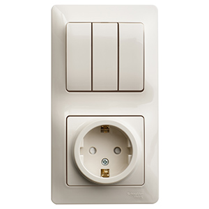 Блок Schneider Electric GSL000278 Glossa (розетка 1-местная с заземлением и защитными шторками + выключатель 3-клавишный), в сборе, бежевый