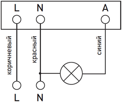 - Для обеспечения режима постоянного включения нагрузки, в независимости от присутствия движущихся объектов в зоне обнаружения датчика и уровня освещенности, подключите датчик согласно нижеприведенной схеме.