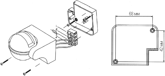 Сенсор датчика имеет регулируемый в вертикальной плоскости поворотный механизм, что позволяет нацелить его на необходимую зону.