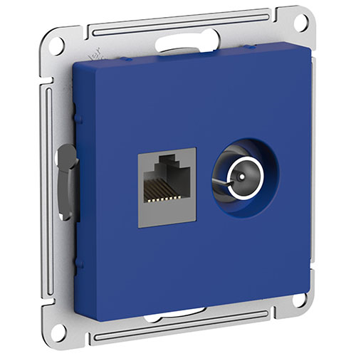 Розетка двойная RJ45 + TV Systeme Electric ATN001189 AtlasDesign скрытой установки, аквамарин