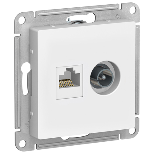 Двойная розетка ТВ + компьютерная RJ45 из коллекции электроустановочных изделий AtlasDesign от Systeme Electric.