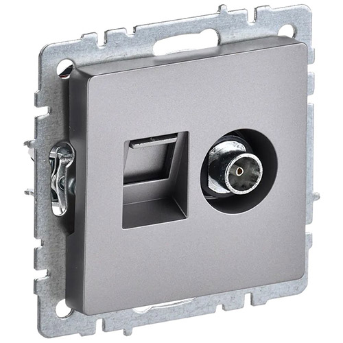 Розетка двойная TV+RJ45 кат.5E IEK РТВ/РК12-БрС Brite скрытой установки, сталь