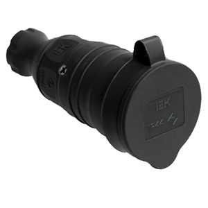 Розетка одноместная переносная каучуковая РБп13-1-Ом 1 IEK PKR21-016-2-K02 "Омега" (16 А, IP44) с заземлением, с защитной крышкой