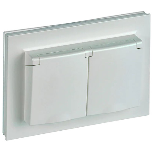 Розетка двухместная IEK РСбш12-3-44-БрЖ Brite (16 А, IP44) скрытой установки, с заземлением и защитными шторками, с крышками, в сборе, жемчуг
