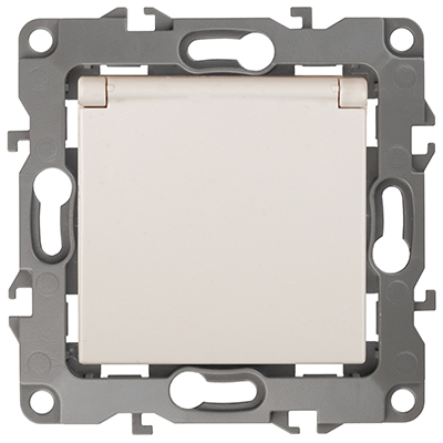 Розетка одноместная 12-2103-02 "Эра 12" (16 А, 250 В, IP20) с заземлением и защитными шторками, с крышкой, слоновая кость