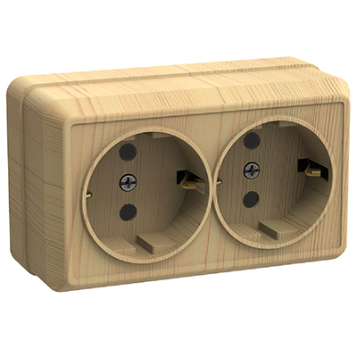 Розетка двухместная IEK РС22-3-ОС "Октава" (16 А) с заземлением, открытой установки, сосна