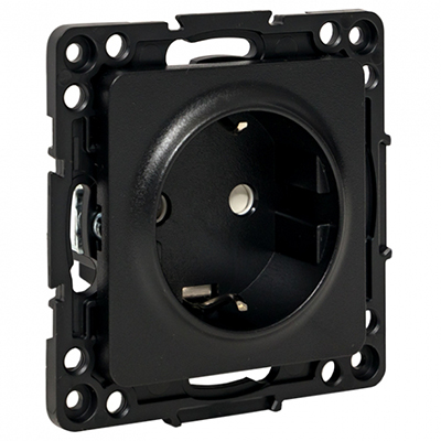 Розетка одноместная EKF EZR16-028-10 "Стокгольм" (16 А, IP20) скрытой установки, с заземлением и защитными шторками, черный