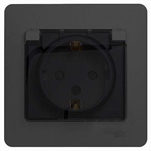 Розетка одноместная Schneider Electric GSL000748 Glossa (16 А, IP44, в сборе) с заземлением и защитными шторками, с крышкой, антрацит