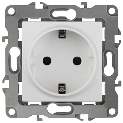 Розетка одноместная 12-2102-01 "Эра 12" (16 А, 250 В, IP20) с заземлением и защитными шторками, белый