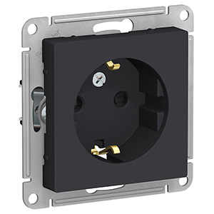 Розетка одноместная Schneider Electric ATN001045 AtlasDesign (16 А, IP20) скрытой установки, с заземлением, с защитными шторками, карбон