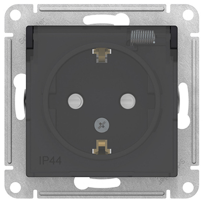 Розетка одноместная Schneider Electric ATN441046 AtlasDesign Aqua (16 А, IP44) скрытой установки, с заземлением, с защитными шторками, с крышкой, карбон