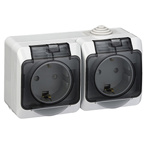 Розетка двухместная Systeme Electric PA16-244C "Этюд" (16 А, IP44) открытой установки, с заземлением и защитными шторками, с крышками, серый