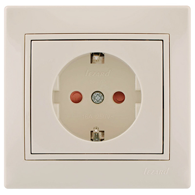 Розетка одноместная Lezard 701-0303-124 Mira (16 А, IP20) скрытой установки, с заземлением, с защитными шторками, кремовый