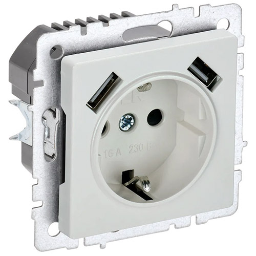 | Тип изделия | розетка силовая с заземляющим контактом и защитными шторками, с USB разъемами |