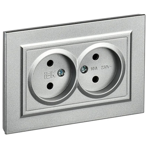 Розетка двухместная IEK РС12-2-БрА Brite (10 А, IP20) скрытой установки, в сборе, алюминий