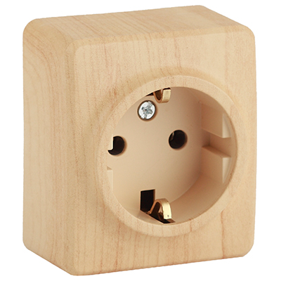 Розетка одноместная "Эра" 11-2203-11 "Эксперт" (16 АХ, 250 В, IP20) открытой установки, с заземлением, сосна