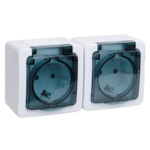 Розетка двухместная РСб22-3-ГПБд "Гермес Plus" (IP54) с заземляющими контактами, с крышками, открытой установки