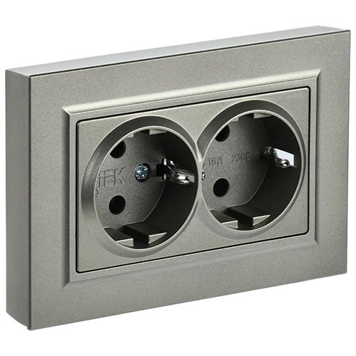 Розетка IEK серии электроустановочных изделий Brite предназначена для скрытой установки внутри помещений.