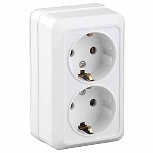 Розетка двухместная Intro 2-204-01 Quadro (16 А, IP20) открытой установки, с заземлением, белый