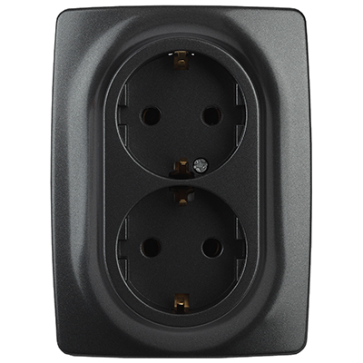 Розетка двухместная 12-2106-05 "Эра 12" (16 А, 250 В, IP20) с заземлением, антрацит