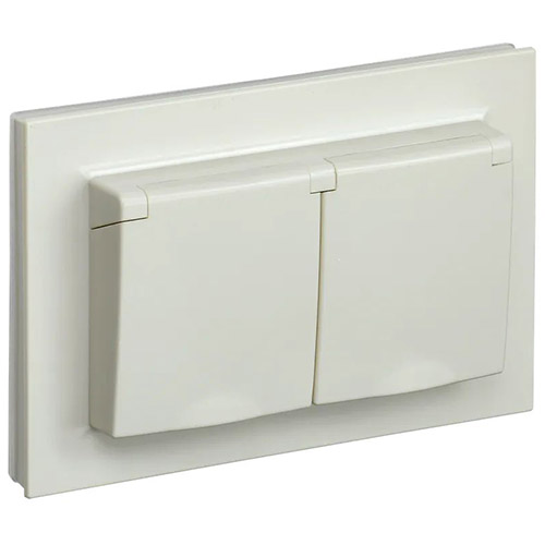 Розетка двухместная IEK РСбш12-3-44-БрКр Brite (16 А, IP44) скрытой установки, с заземлением и защитными шторками, с крышками, в сборе, бежевый