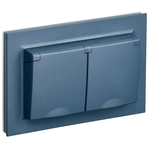 Розетка двухместная IEK РСбш12-3-44-БрМ Brite (16 А, IP44) скрытой установки, с заземлением и защитными шторками, с крышками, в сборе, маренго