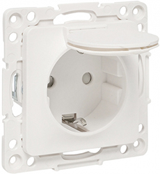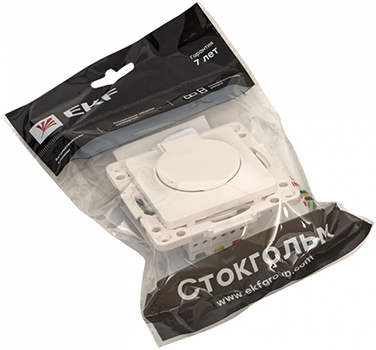 Розетка одноместная EKF EYR16-028-10-44 "Стокгольм" (16 А, IP44) скрытой установки, с заземлением и защитными шторками, с крышкой, белый