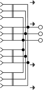 Благодаря мостовым винтовым зажимам увеличенной емкости в розетке возможно создание шлейфа (параллельного соединения нескольких рядом стоящих розеток) без использования клеммников. |