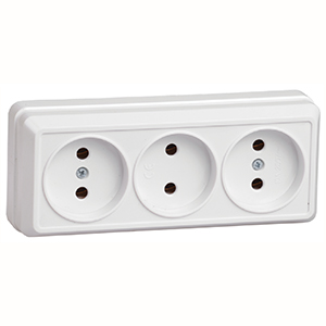 Розетка трехместная РС23-2-ОБ "Октава" IEK (10 А, IP20) открытой установки, белый