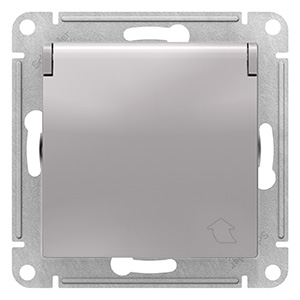 Розетка одноместная Schneider Electric ATN000346 AtlasDesign (16 А, IP20) скрытой установки, с заземлением, с защитными шторками, с крышкой, алюминий