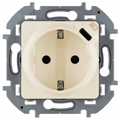 Розетка одноместная Legrand 673771 Inspiria (16 А, IP20) скрытой установки, с заземлением и защитными шторками, со встроенным USB, слоновая кость