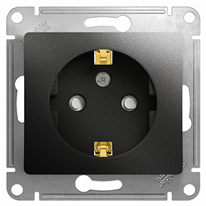 Розетка одноместная Schneider Electric GSL000745 Glossa (16 А, механизм) с заземлением и защитными шторками, скрытой установки, антрацит
