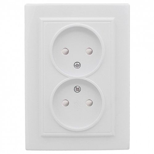 Розетка двухместная EKF ERR10-102-100 "Минск" (10 А, IP20) скрытой установки, с защитными шторками, белый