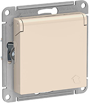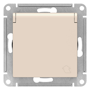 Розетка одноместная Schneider Electric ATN000246 AtlasDesign (16 А, IP20) скрытой установки, с заземлением, с защитными шторками, с крышкой, бежевый