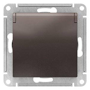 Розетка одноместная Schneider Electric ATN000646 AtlasDesign (16 А, IP20) скрытой установки, с заземлением, с защитными шторками, с крышкой, мокко
