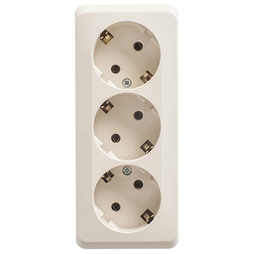 Розетка трехместная Systeme Electric PA16-011K "Этюд" (16 А, IP20) открытой установки, с заземлением, кремовый