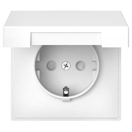 Розетка одноместная Systeme Electric GAL000146 ArtGallery (16 А, IP20) скрытой установки, с заземлением и защитными шторками, с крышкой, белый