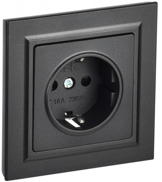 Розетка одноместная IEK РС14-1-0-БрЧ Brite (16 А, IP20) скрытой установки, с заземлением и защитными шторками, черный