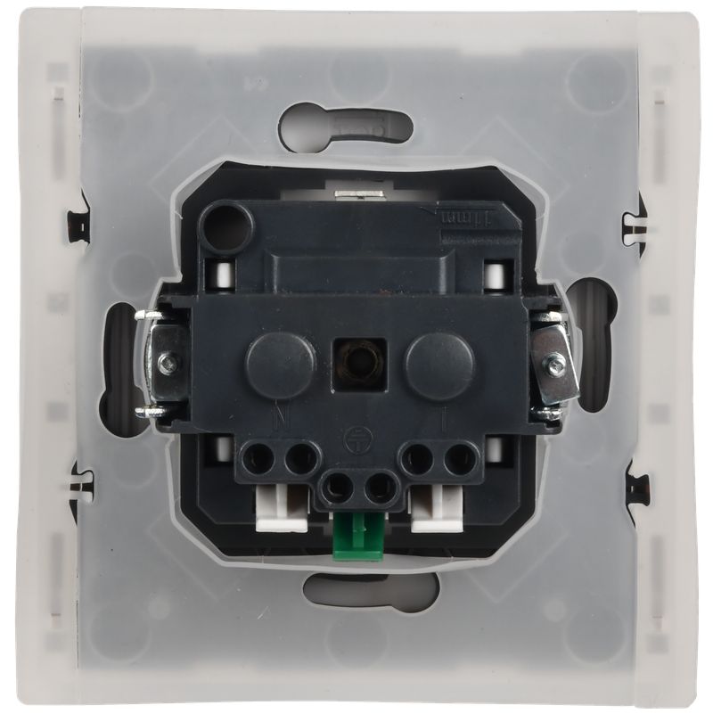 Розетка одноместная IEK FP219 Forte&Piano (16 А, IP44, безвинтовые зажимы) скрытой установки, с заземлением и шторками, с крышкой, белый