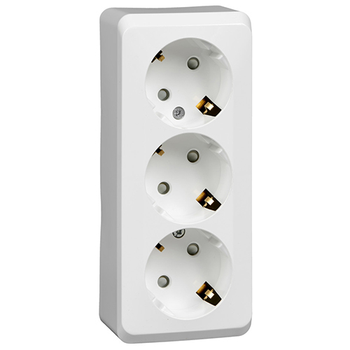 Розетка трехместная Systeme Electric PA16-012B "Этюд" (16 А, IP20) открытой установки, с заземлением и защитными шторками, белый