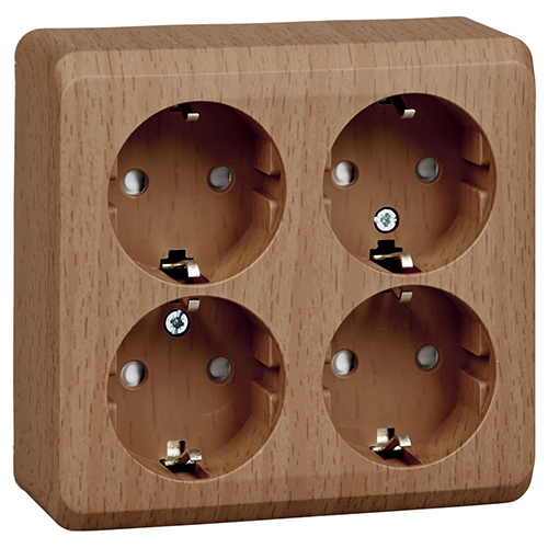 Розетка четырехместная Systeme Electric PA16-208T "Этюд" (16 А, IP20) открытой установки, с заземлением и защитными шторками, бук