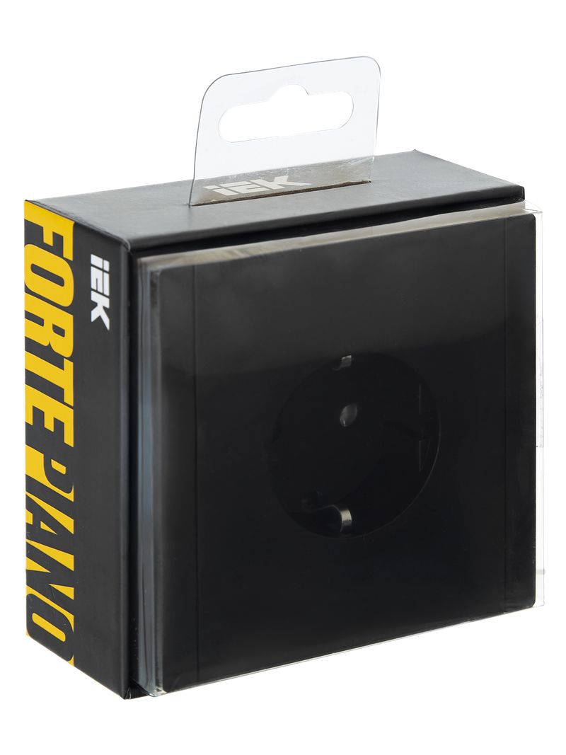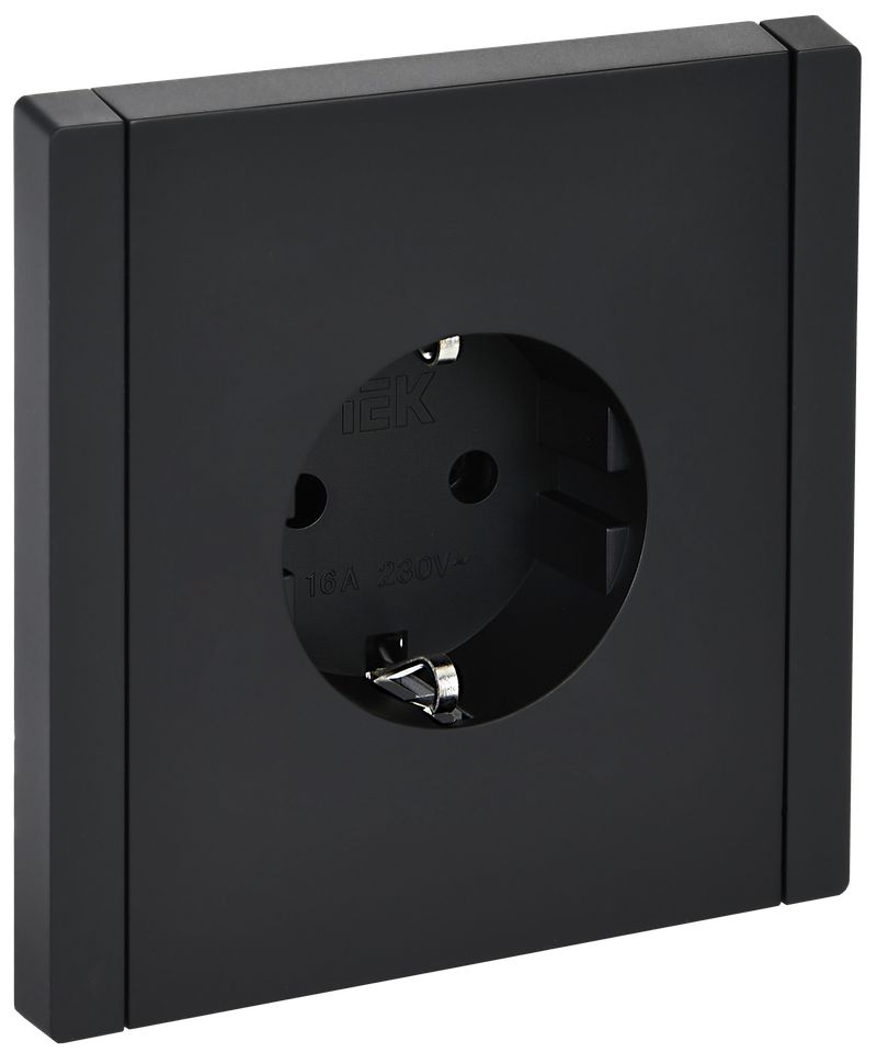 Розетка одноместная IEK FP114 Forte&Piano (16 А, IP20, безвинтовые зажимы) скрытой установки, с заземлением, черный