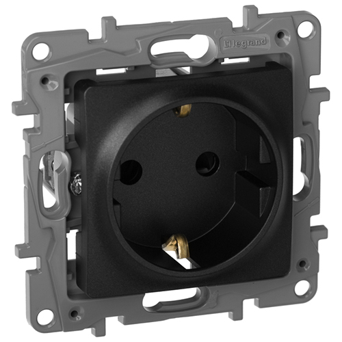 Розетка одноместная Legrand Etika 672621 (16 А, IP20) скрытой установки, с заземлением, антрацит