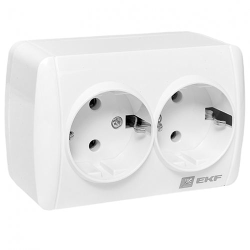 Розетка двухместная EKF EQR16-129-30-54 "Владивосток" (16 А, IP44) открытой установки, с заземлением, белый
