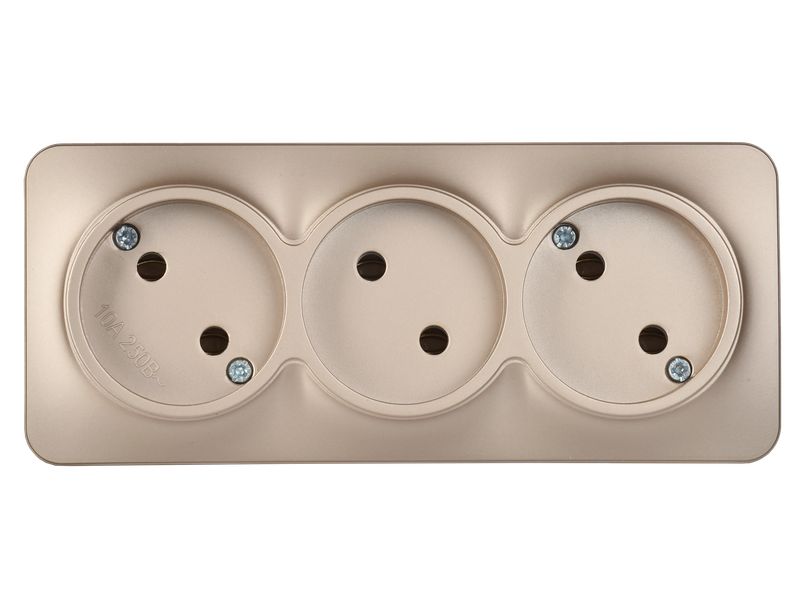 Розетка трехместная IEK РС23-2-ХШм Glory (10 А, IP20) открытой установки, шампань матовый