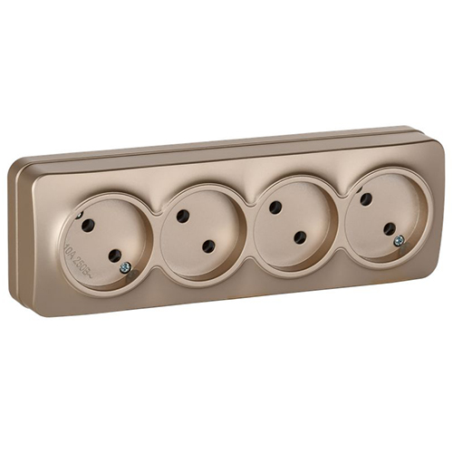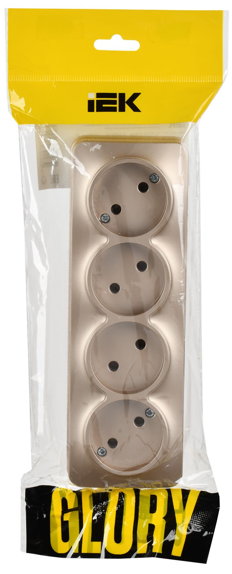 Розетка четырехместная IEK РС24-2-ХШм Glory (10 А, IP20) открытой установки, шампань матовый