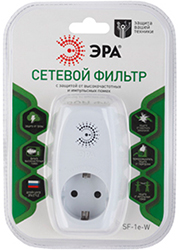 Сетевой фильтр SF-1e-W "Эра" обеспечивает защиту подключаемого электрооборудования от высокочастотных помех, от импульсных помех и грозового разряда, имеет защиту от перегрузки и тока короткого замыкания.