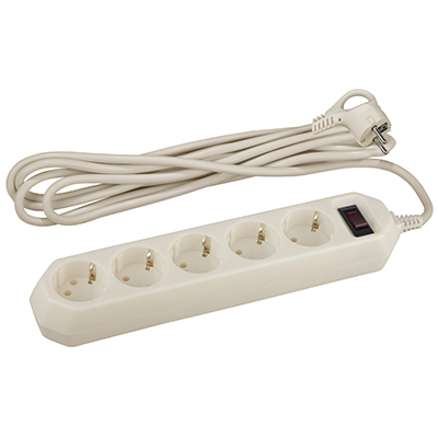 Сетевой фильтр пятиместный 3 м USF-5es-3m-I "Эра" (ПВС, 10 А, базовый уровень защиты), с заземлением, с выключателем, слоновая кость