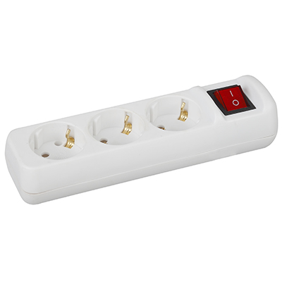 Колодка электрическая 3-местная KХ-3es "Эра" (16 А, IP20) с заземлением, с выключателем, белый